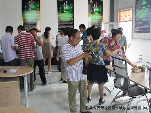 诸位领导不仅仅在讲解员的带领下耐心地参观了水波尔电商运营中心、电商产品展示区以及水波尔产品的生产线;还进一步地详细询问了水波尔电商工作自开展以来所取得的实质性成效,高度评价了水波尔在互联网电商领域所起到的电商带头作用。