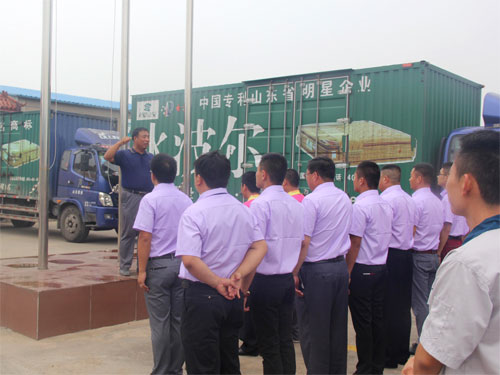 On the morning of August 19, 2015, the water pole's team took the Bohr's instructions to the 14th jinan furniture fair. Linyi city water pole bed industry co., LTD. Has held a grand ceremony for this vanguard corps. Qi shengrui, general manager of the water pole bed industry co., LTD., presided over the whole event. With a strong state of fire, the army's orderly image calls out the "guaranteed completion" slogan. After the liquor was over, he went to the battlefield.